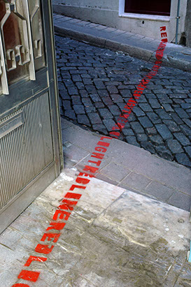 2010, graffiti’, variable dimensions, text in sprayed red line in written loop.