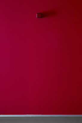 2017, coluna de som vermelha, (63x63x63cm), voz gravada emitindo texto pela artista (loop)